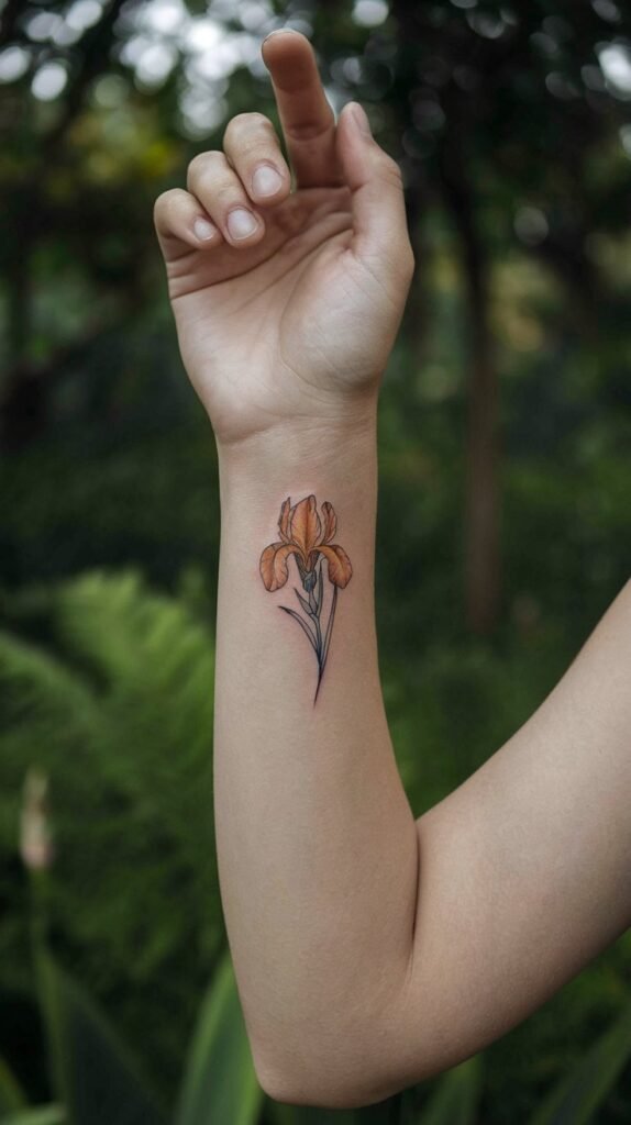 Either way, an exotic orange iris bloom art tattoo is sure to turn heads and spark conversations.