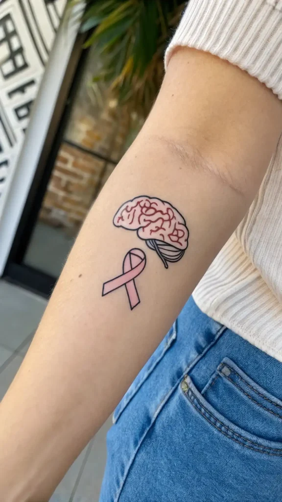 Consider incorporating a cerebral emblem or brain wellness logo into your tattoo design.